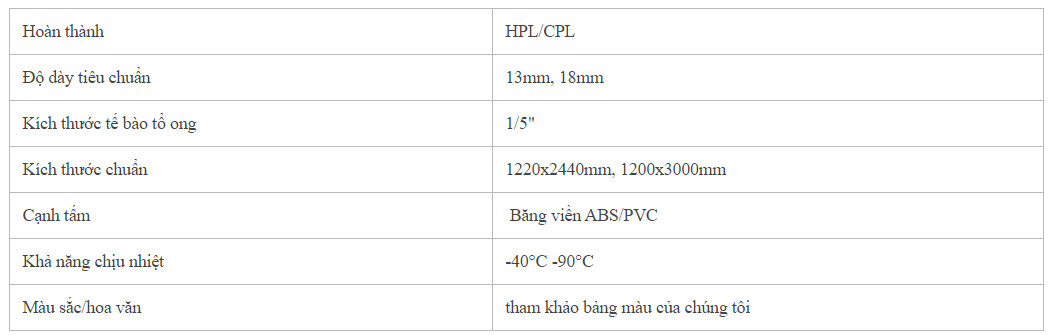 Thông số kỹ thuật của tấm gỗ ép tổ ong nhẹ