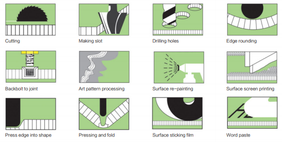 - Thiết kế linh hoạt: Tấm nhôm tổ ong có thể có nhiều thiết kế từ ghép cạnh, uốn cong đến gấp, khoan lỗ… tất cả đều rất dễ dàng và nhanh chóng, tạo nên các thiết kế đẹp, tinh tế và phù hợp với không gian sẵn có
