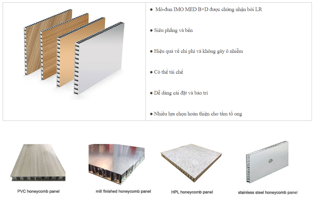 Trong lĩnh vực hàng hải, nhất là trong ngành đóng tàu. Nhằm tăng độ chịu lực, giảm trọng lượng cho phương tiện tàu thuyền thì tấm nhôm tổ ong là vật liệu phù hợp. Chúng thường được sử dụng để làm sàn, trần, vách ngăn, tủ, kệ, tường, mặt bàn..