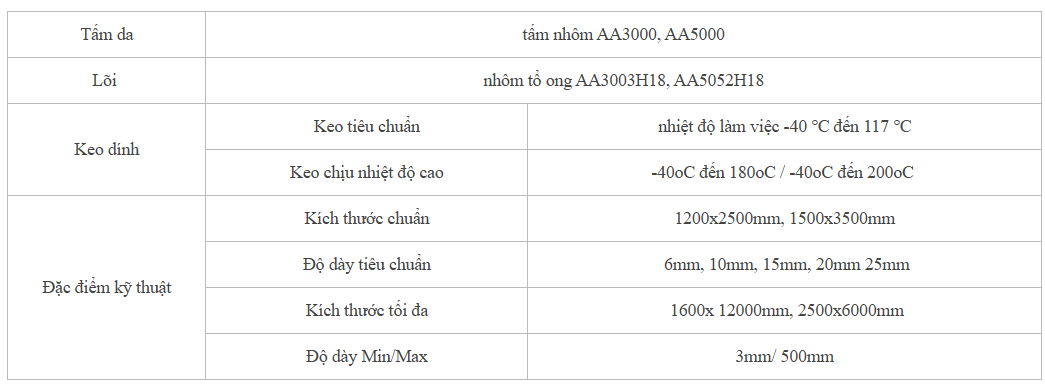 1. Cấu trúc tổ ong: Lõi tổ ong bằng nhôm giúp tăng cường khả năng chịu lực và giảm trọng lượng.