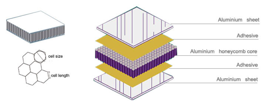 Tấm nhôm tổ ong được hoàn thiện sẵn là tấm nhôm tổ ong bao gồm 5 lớp bao gồm: Tấm nhôm bên ngoài + lớp keo dán + lõi nhôm tổ ong + lớp keo dán + tấm nhôm bên ngoài. Với 5 lớp được phối hợp một cách hoàn chỉnh, tạo nên lớp lõi bên trong rỗng và nhẹ, lớp nhôm bên ngoài cứng cáp và mang độ phẳng cao. Tạo nên một tổng thể hoàn hảo, mang tỷ lệ độ cứng trên trọng lượng rất tuyệt vời. Ngoài ra chúng còn có thể cách âm, cách nhiệt, dễ dàng gia công và ghép nối, bền bỉ, tuổi thọ lâu dài