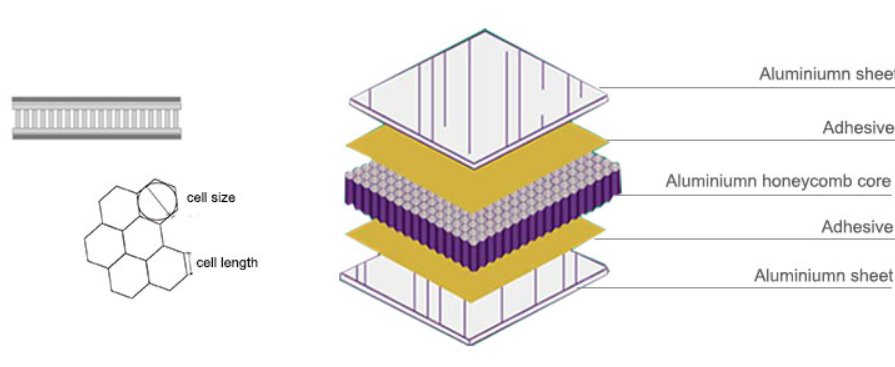 Tấm nhôm tổ ong sơn gồm 3 phần chính: