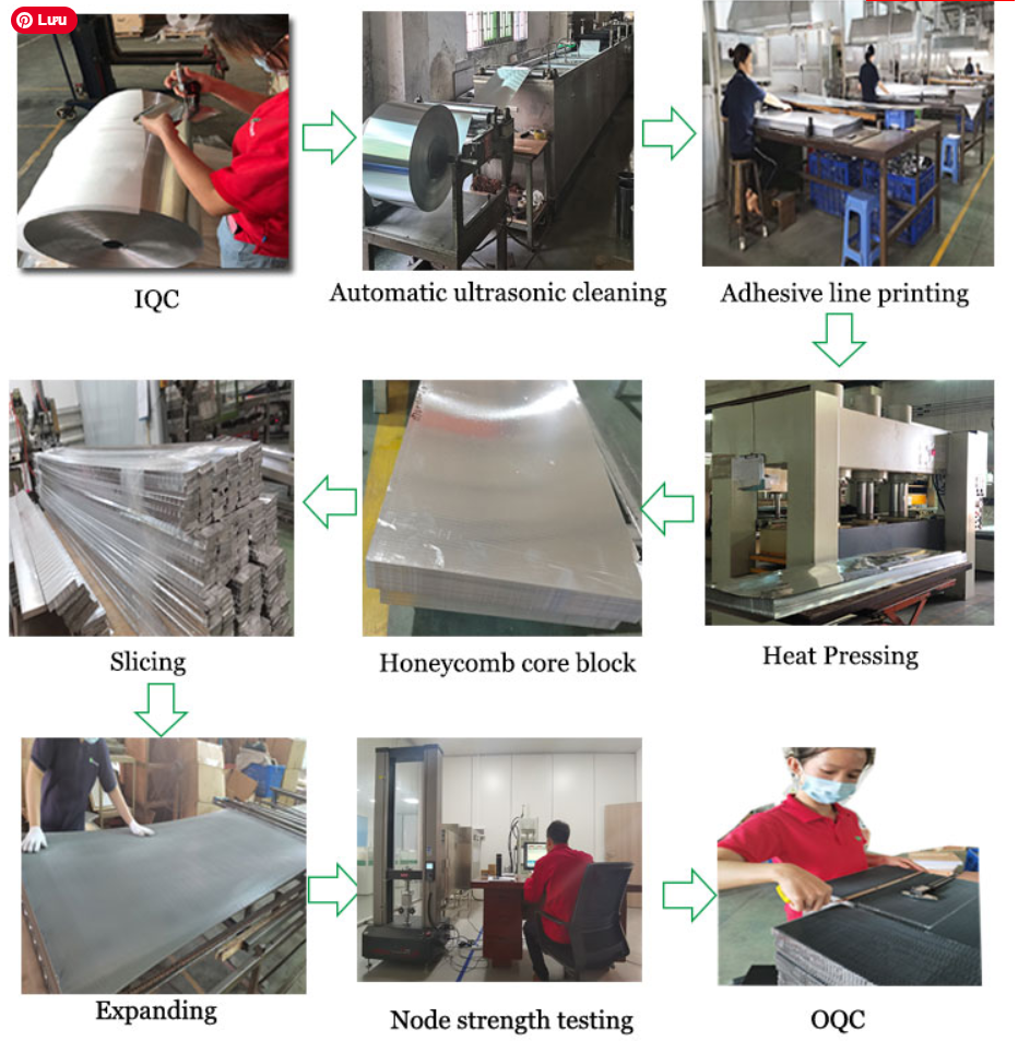 - Lõi tổ ong nhôm mở rộng (Expanded Aluminum Honeycomb): Đã giãn thành hình lục giác, sẵn sàng sử dụng.